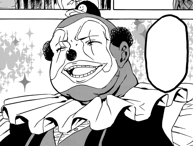 Champ is a major antagonist from the manga Akame Ga Kill!. He is one of the members of the Empire's Secret Police Wild Hunt. He is portrayed as an overweight Clown with poor stamina and according to Syura is a "Serial Killer Entertainer". He is noteworthy to be Run's archenemy as well as his reason for wanting to change the empire by joining Jaegers due to a dark event caused by him.