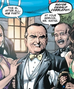 Mayor Oswald Cobblepot is the main antagonist from the first volume of the DC Elseworld's comic Batman: Earth One. Unlike other iterations of Penguin who has evil is cool moments, this one is taken completely seriously and less likable.